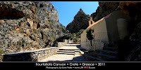 The Kourtaliotiko Gorge, also known as the Asomatos Gorge, is a gorge on the southern side of the western part of the island of Crete. The village of Koxare is at the northern end of the gorge. A road runs north to south through the gorge joining Koxare to Asomatos; it then leads west, on to the town of Plakias on the southern coast of Crete. A small ruined church (Agios Nikolaos) sits within the gorge. There is also a 40 metre high waterfall. Origin: wikipedia